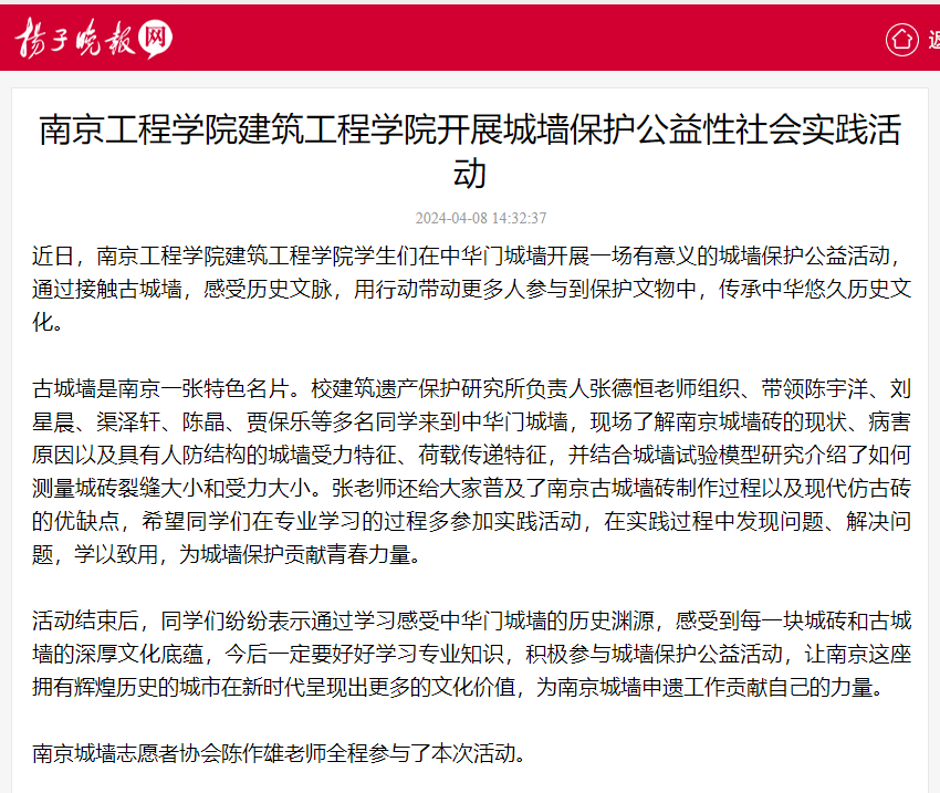 南京城墙志愿者协会陈作雄老师全程参与了本次活动。