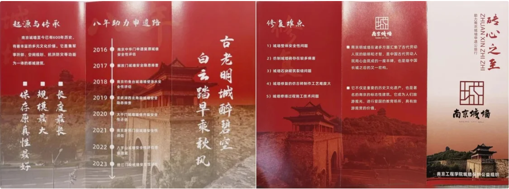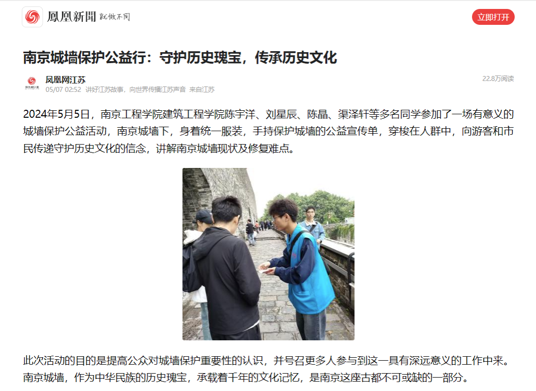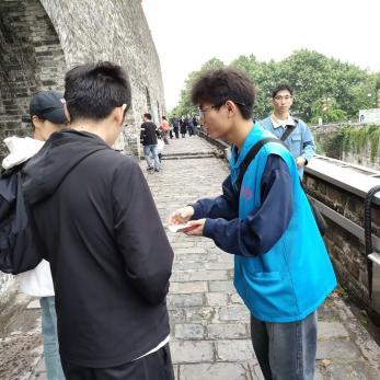 2024年5月5日,beat365官方网站建筑工程学院陈宇洋、刘星辰、陈晶、渠泽轩等多名同学参加了一场有意义的城墙保护公益活动,南京城墙下,身着统一服装,手持保护城墙的公益宣传单,穿梭在人群中,向游客和市民传递守护历史文化的信念,讲解南京城墙现状及修复难点。