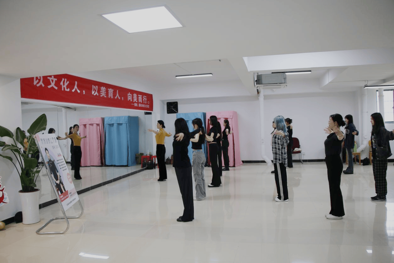 随后,伟珍老师带领大家共同学习了旗袍文化,师生们通过老师的讲解,对旗袍文化有了更好的了解。随后,伟珍老师带领大家学习了旗袍走秀的一些基本步伐与手势,从最基本的站姿开始,收腹、挺胸、立腰、提气,一点点纠正着师生们的走姿站姿问题,再到如何摆手、抬腿、转身、走姿站姿、形体仪态等,大家掌握之后配上婉转美妙的音乐,一遍又一遍地进行练习,在不断的训练中塑造女性的独特之美。