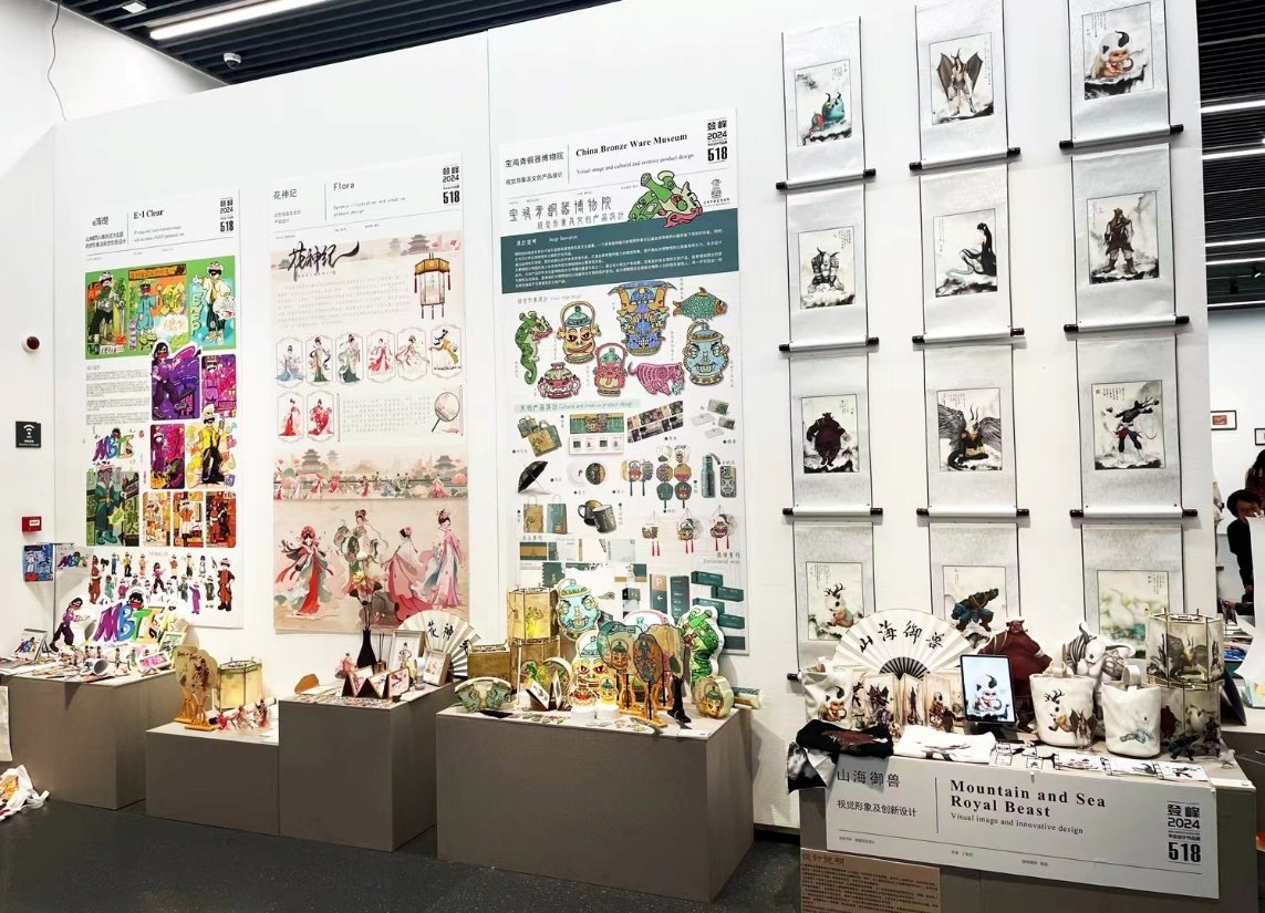 展览作品聚焦人工智能设计、文化创意产业、乡村振兴、非遗文化传承等内容展开创作,不仅有传统绘画与现代数字技术的完美融合,也有虚拟现实等前沿技术在艺术创作中的巧妙运用,呈现了毕业生对当下与未来设计主题的思考、研究与实践。琳琅满目的设计作品吸引了不少师生、游客围观。“安徽无为鱼灯历史悠久,造型独特、纹样美丽,希望通过我们的IP形象及文创设计,让更多人了解鱼灯,传承非遗文化。”视觉传达设计专业的温霞、范译心深入到安徽当地,通过采访非遗传承人、拍摄无为鱼灯制作与灯舞场景,大大丰富了毕业设计作品内涵与传播形式。