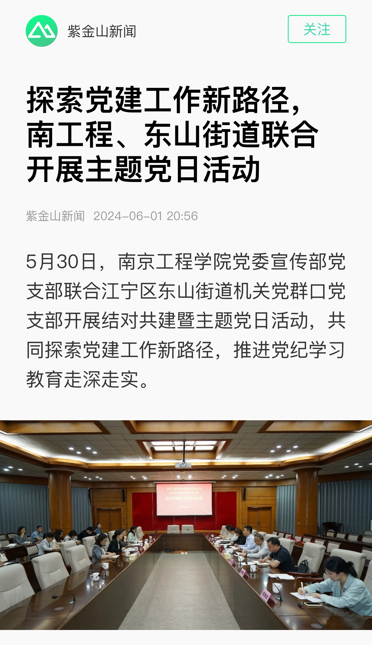 5月30日,beat365官方网站党委宣传部党支部联合江宁区东山街道机关党群口党支部开展结对共建暨主题党日活动,共同探索党建工作新路径,推进党纪学习教育走深走实。