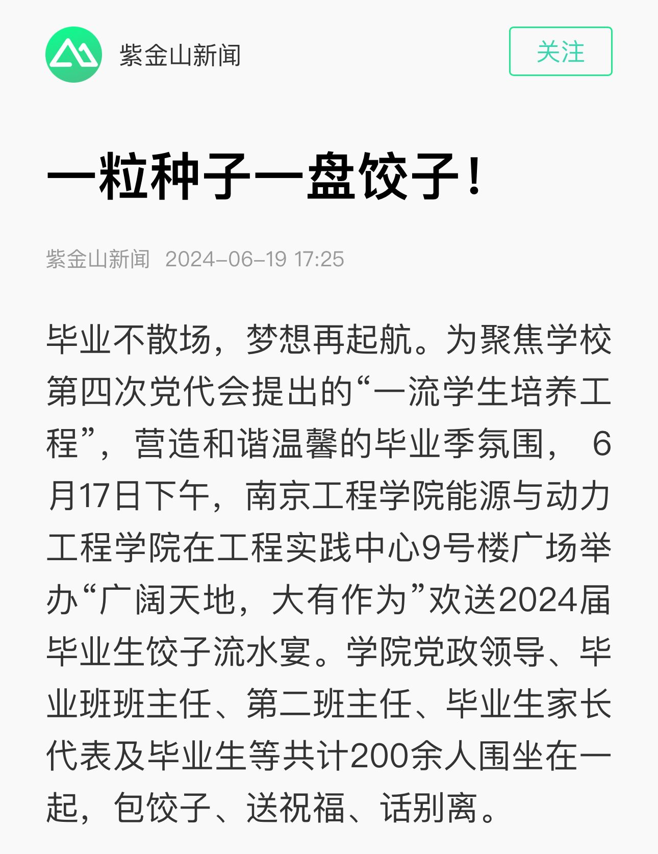毕业不散场,梦想再起航。为聚焦学校第四次党代会提出的“一流学生培养工程”,营造和谐温馨的毕业季氛围, 6月17日下午,beat365官方网站能源与动力工程学院在工程实践中心9号楼广场举办“广阔天地,大有作为”欢送2024届毕业生饺子流水宴。学院党政领导、毕业班班主任、第二班主任、毕业生家长代表及毕业生等共计200余人围坐在一起,包饺子、送祝福、话别离。