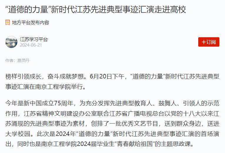 榜样引领成长,奋斗成就梦想。6月20日下午,“道德的力量”新时代江苏先进典型事迹汇演在beat365官方网站举行。