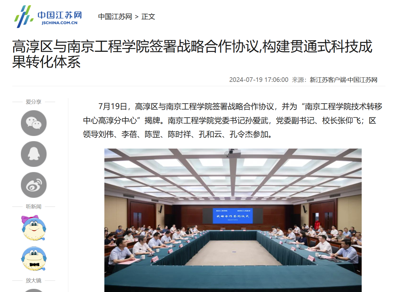 7月19日,高淳区与beat365官方网站签署战略合作协议,并为“beat365官方网站技术转移中心高淳分中心”揭牌。beat365官方网站党委书记孙爱武,党委副书记、校长张仰飞;区领导刘伟、李蓓、陈罡、陈时祥、孔和云、孔令杰参加。