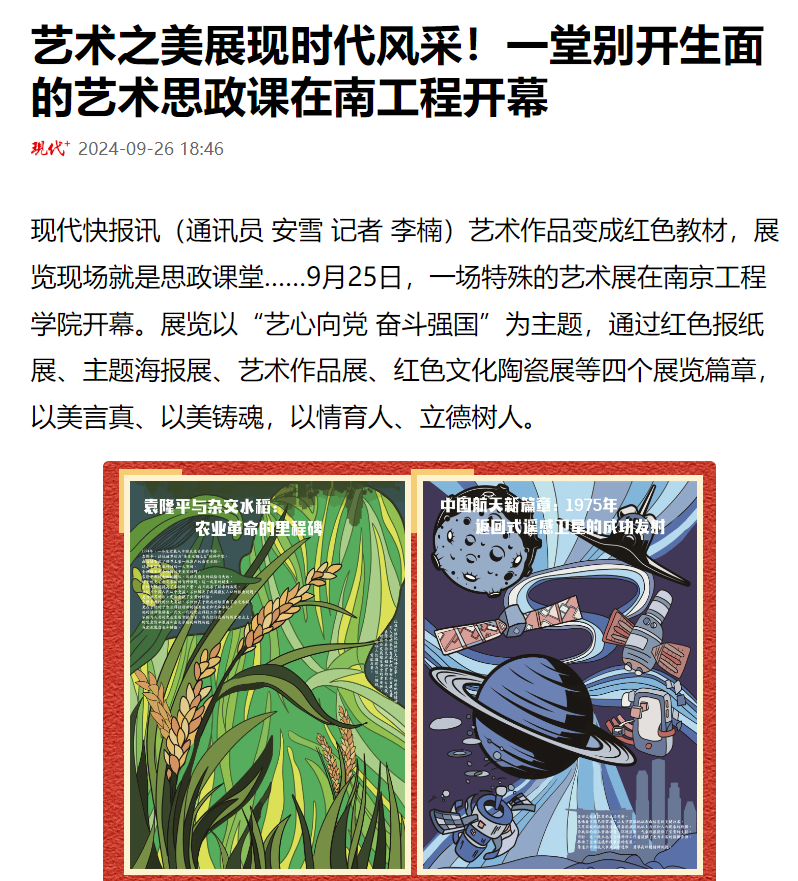 现代快报讯(通讯员 安雪 记者 李楠)艺术作品变成红色教材,展览现场就是思政课堂……9月25日,一场特殊的艺术展在beat365官方网站开幕。展览以“艺心向党 奋斗强国”为主题,通过红色报纸展、主题海报展、艺术作品展、红色文化陶瓷展等四个展览篇章,以美言真、以美铸魂,以情育人、立德树人。
