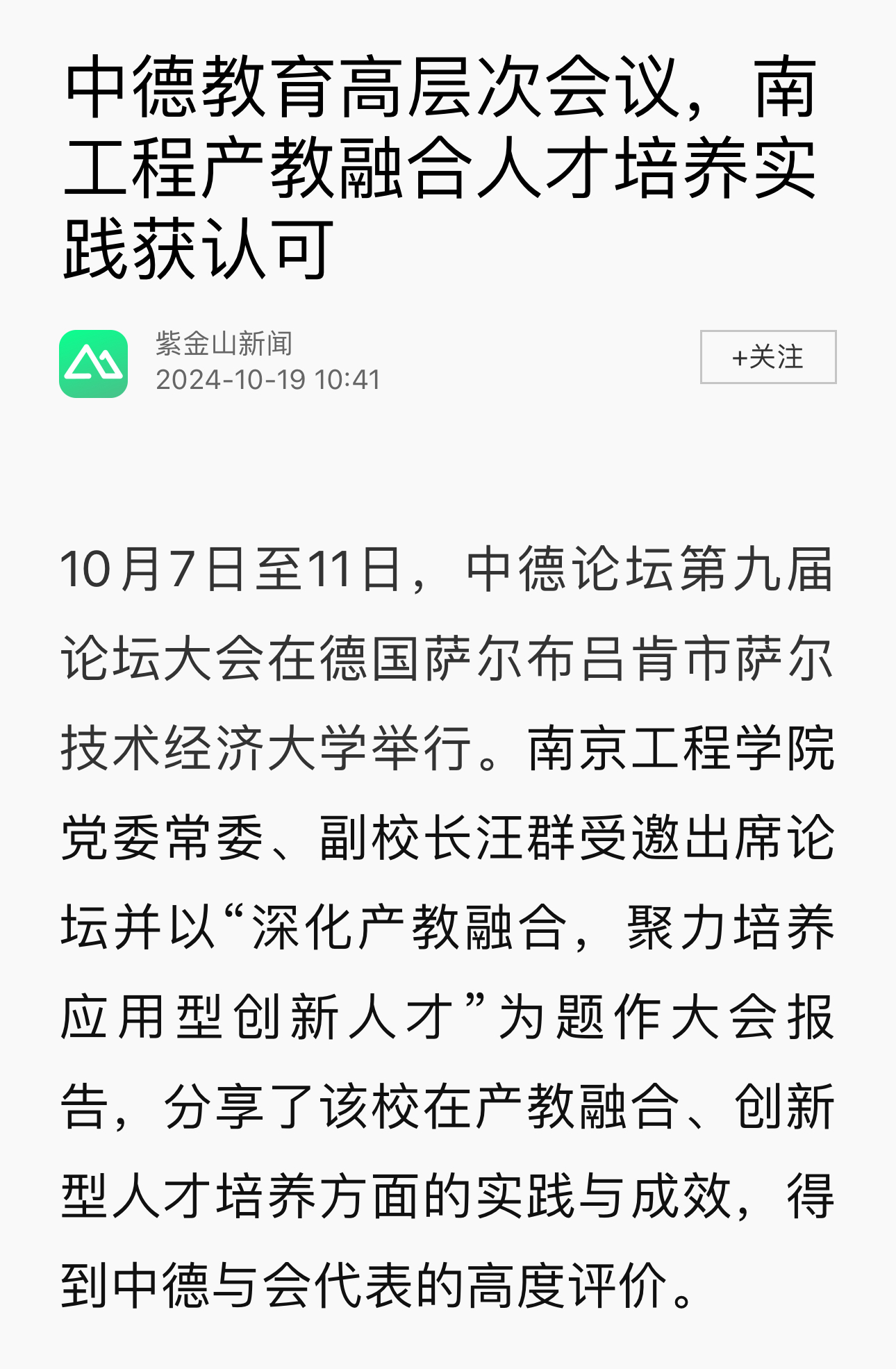10月7日至11日,中德论坛第九届论坛大会在德国萨尔布吕肯市萨尔技术经济大学举行。beat365官方网站党委常委、副校长汪群受邀出席论坛并以“深化产教融合,聚力培养应用型创新人才”为题作大会报告,分享了该校在产教融合、创新型人才培养方面的实践与成效,得到中德与会代表的高度评价。