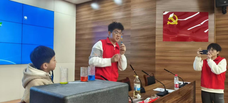大学生志愿者代表以“创新推动思维,挑战成就自我”为主题,分享他们在学习研究项目和参加科创竞赛的创新经历,让同学们对科技有了更浓厚的兴趣,更感受到榜样的力量。