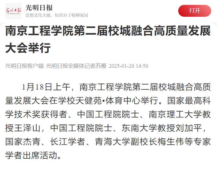 据介绍,自去年举办首届校城融合发展大会,积极推动校地融合以来,南工程已与各区政府、科研院所共建科技研发机构平台57个,与各企业签订产学研合作项目273项,完成知识产权转化专利181件。(光明日报全媒体记者苏雁)