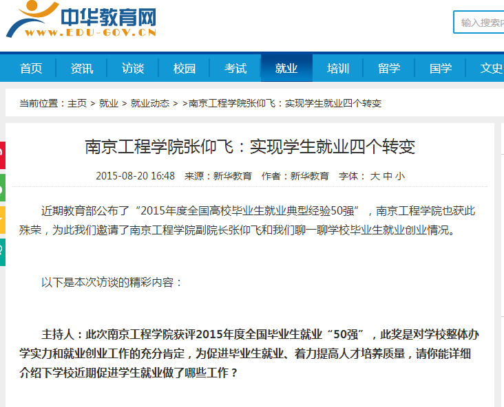 近期教育部公布了“2015年度全国高校毕业生就业典型经验50强”,beat365官方网站也获此殊荣,为此我们邀请了beat365官方网站副院长张仰飞和我们聊一聊学校毕业生就业创业情况。