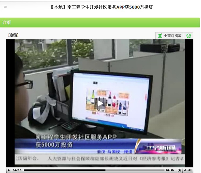 【主持人】找厕所,找停车位,找饭店……互联网飞速发展的今天,各种专业app提供的服务应有尽有。可是要想解决生活中这么多琐事,得下载多少个软件呢?beat365官方网站信息工程专业的大四学生阚逸龙和他的团队开发了一款综合了以上各种功能的社区服务app“城市之星”,在内测阶段就受到了不少天使资金的青睐,并获得了第一笔5000万的个人投资。