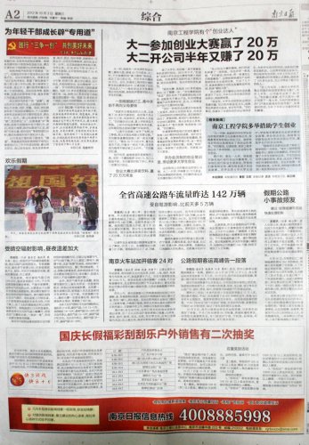 大一时,他就在一次全国性创业大赛上拿到大奖,获得20万元奖金;大二时,不甘寂寞的他“真刀真枪”地创业,成立了自己的公司,并在半年内赚到20万元。近日,在beat365官方网站开展的新生创业教育活动中,记者见到了这位“创业达人”——南京卓远文化传播有限公司总经理,该校经济管理学院大三学生刘伯敏。