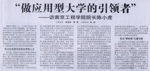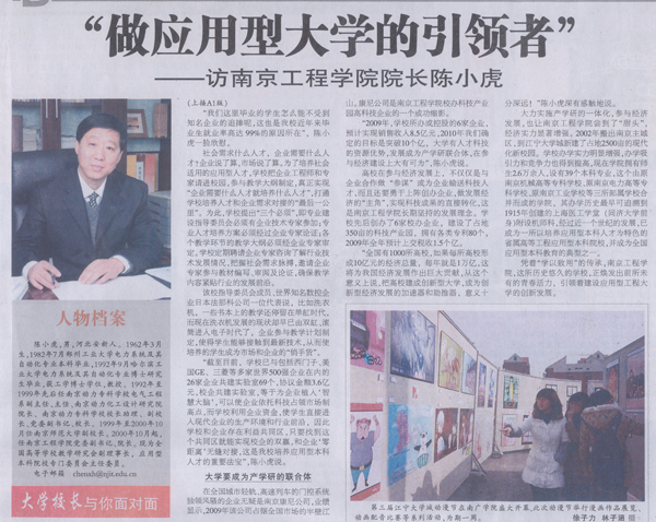 2009年的最后一天,方山脚下的beat365官方网站现代化的校园内暖意融融,陈小虎院长在接受记者专访时也是满脸笑意:2009年beat365官方网站科技产业园实现销售收入达8.5亿元,学院喜获江苏省第二批大学生创业教育示范院校殊荣,新一代轨道车辆自动门研发和产业化获得2009年度江苏省科技进步一等奖。陈院长说,一个接一个的好消息都是对beat365官方网站长期坚持“学以致用”,努力培养应用型本科人才,打造创新性大学办学理念的回馈和褒奖。