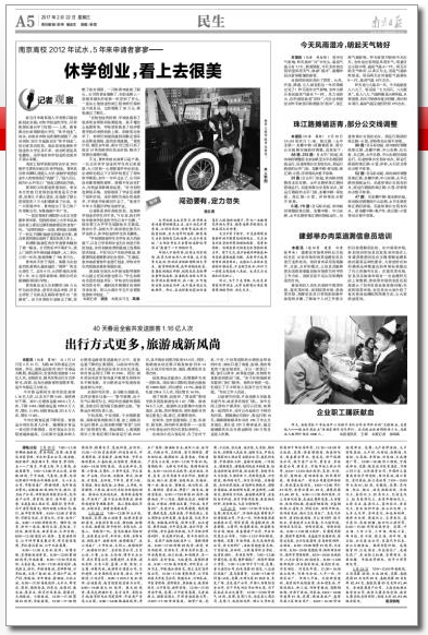 新生可申请保留入学资格开展创新创业实践;对休学创业的学生,可单独规定最长学习年限……上周,教育部出台新规鼓励大学生“休学创业”。其实,在南京市相关政策的鼓励下,南京高校2012年起就试水“休学创业”。但记者采访发现,南京高校选择休学创业的大学生并不多,成功的更是凤毛麟角,而学校对休学创业的态度并不那么积极。