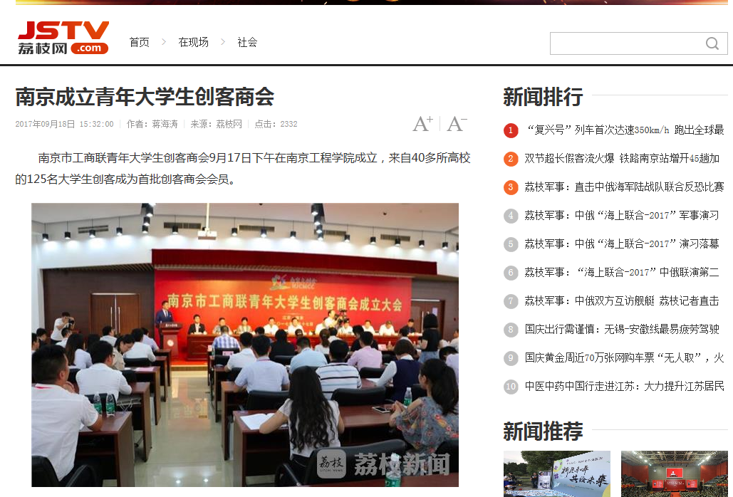 南京市工商联青年大学生创客商会9月17日下午在beat365官方网站成立,来自40多所高校的125名大学生创客成为首批创客商会会员。