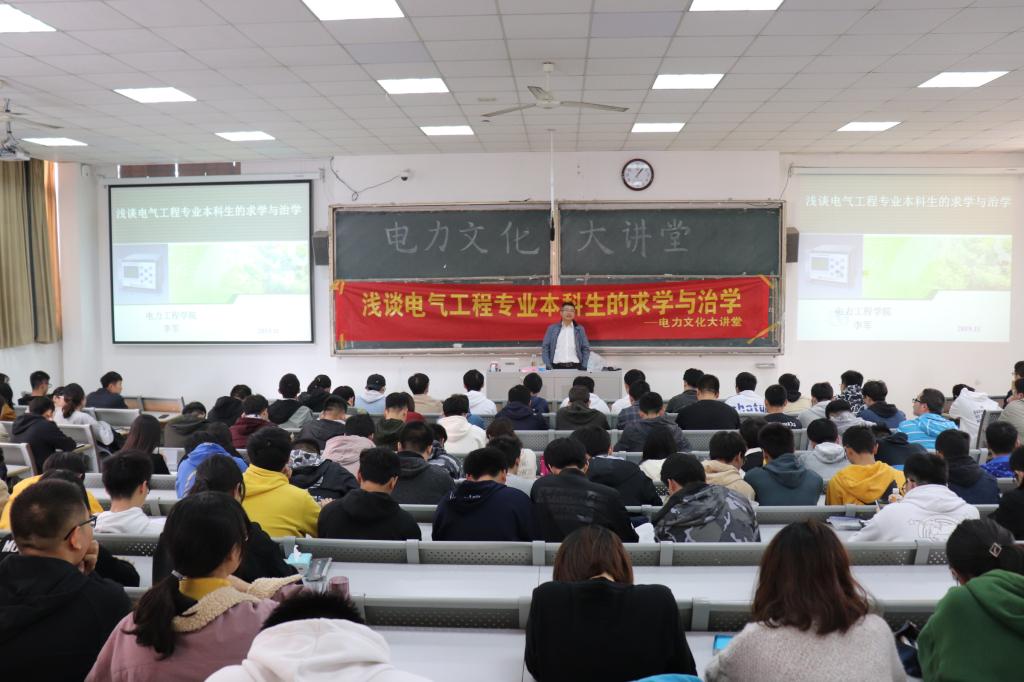 11月13日下午,电力工程学院电力文化大讲堂在东202教室正式开讲,该院李军副院长为200多名学生作题为“浅谈电气工程专业本科生的求学和治学”的讲座。