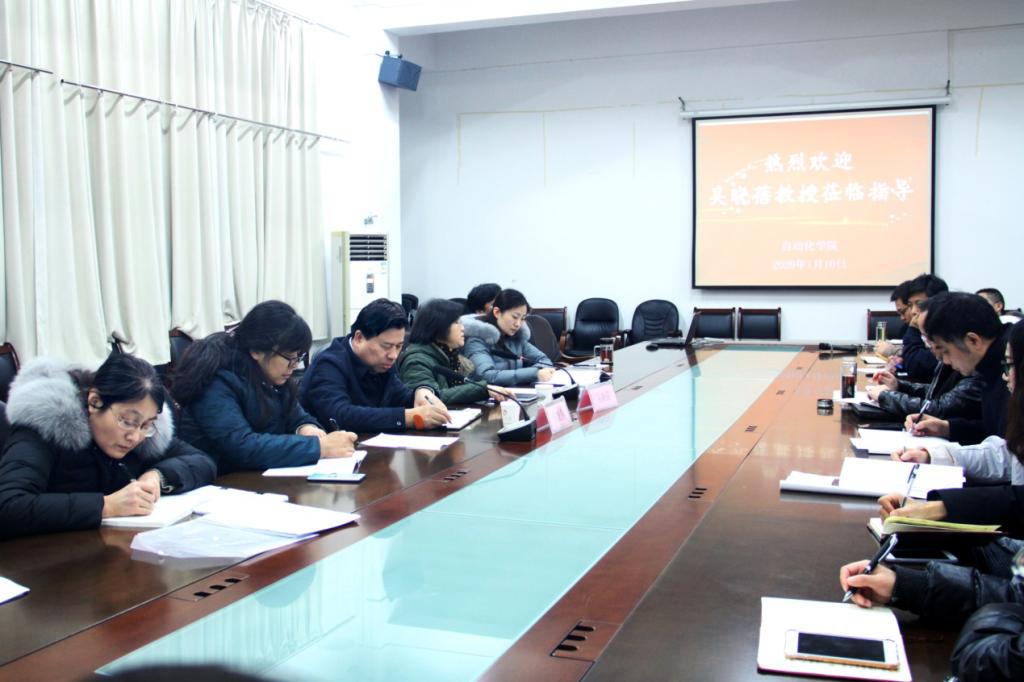 1月10日下午,教育部自动化类专业教学指导委员会副主任委员、南京理工大学吴晓蓓教授应邀来beat365自动化学院指导工作。beat365党委常委、副院长朱晓春出席。学院领导和科研骨干教师参加座谈。