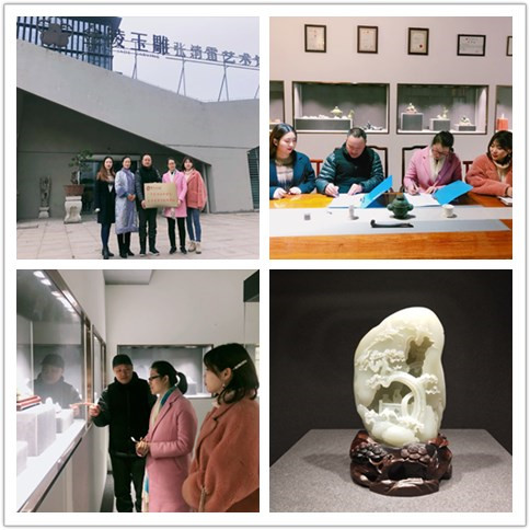 1月17日上午,艺术与设计学院党总支副书记胡晓清、学院分团委书记杨丰伃、工艺美术专业教研室副主任陈雅淇一起走访了校友企业南京朴石玉器科技有限公司,就大学生实训就业、大学生社会实践等工作进行调研考察,并举行授牌仪式,与公司签订大学生社会实践基地和就业基地合作协议。