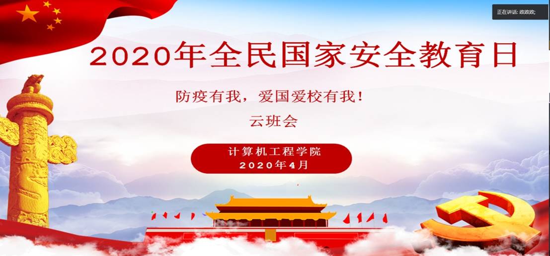 为进一步增强师生的国家安全意识,提高防范和抵御安全风险能力,在第五个“4·15全民国家安全教育日”来临之际,计算机工程学院结合当前我国新冠肺炎疫情防控形势和学校的疫情防控实际,精心策划开展了一系列的“国家安全教育日”主题教育活动。