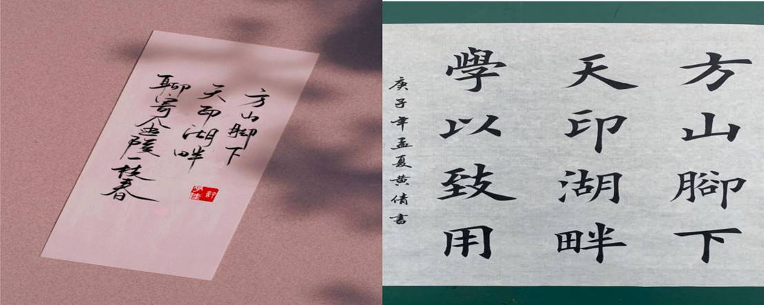 “相恋”部分,同学们挥毫笔墨,描摹丹青,记取美好,表达对学校的爱恋。同学们以誊写校规,勾画校园美景等形式说爱。笔走龙蛇,字里行间展示了每一个南工程人的赤子之心,泼墨描摹,勾勒出南工程的美丽风景。