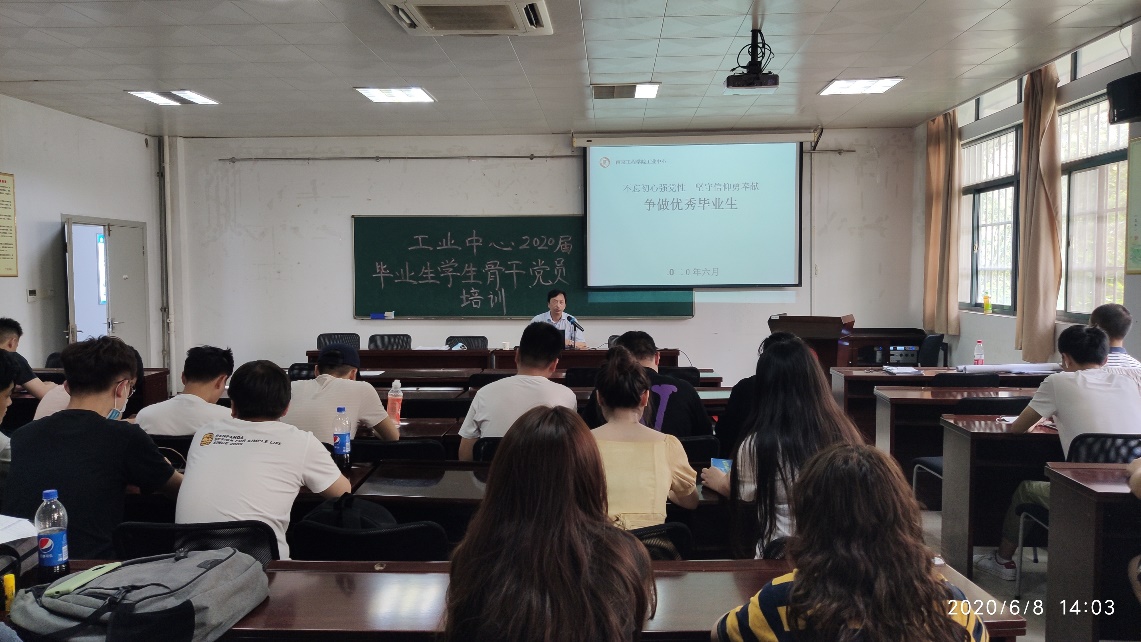 6月8日下午,工业中心邀请关心下一代工作委员会吴晓东老师在基础实验楼B114为毕业生党员做讲座,讲座以“不忘初心强党性 坚守信仰勇奉献——争做优秀毕业生”为主题,中心2016级学生党员通过线上和线下的方式共同参与了学习。