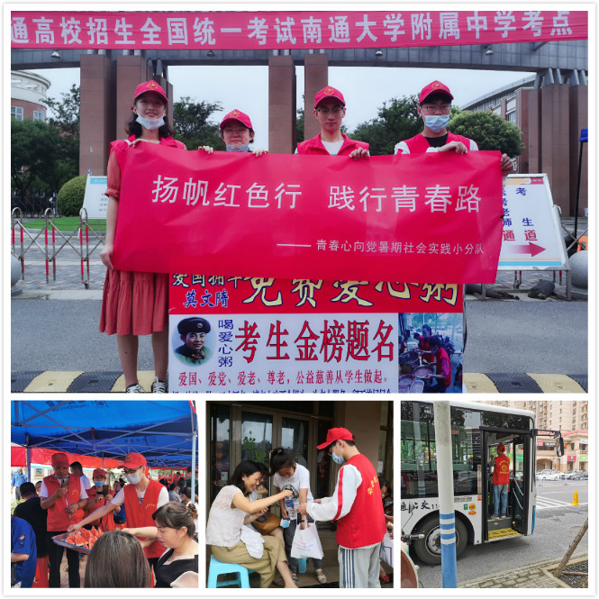 为纪念中国共产党成立99周年,以实际行动贡献和传递青春正能量,近日,环境工程学院“青春心向党小分队”暑期实践团队积极行动,团队成员来到了南通市几个高考考点当起了志愿者。