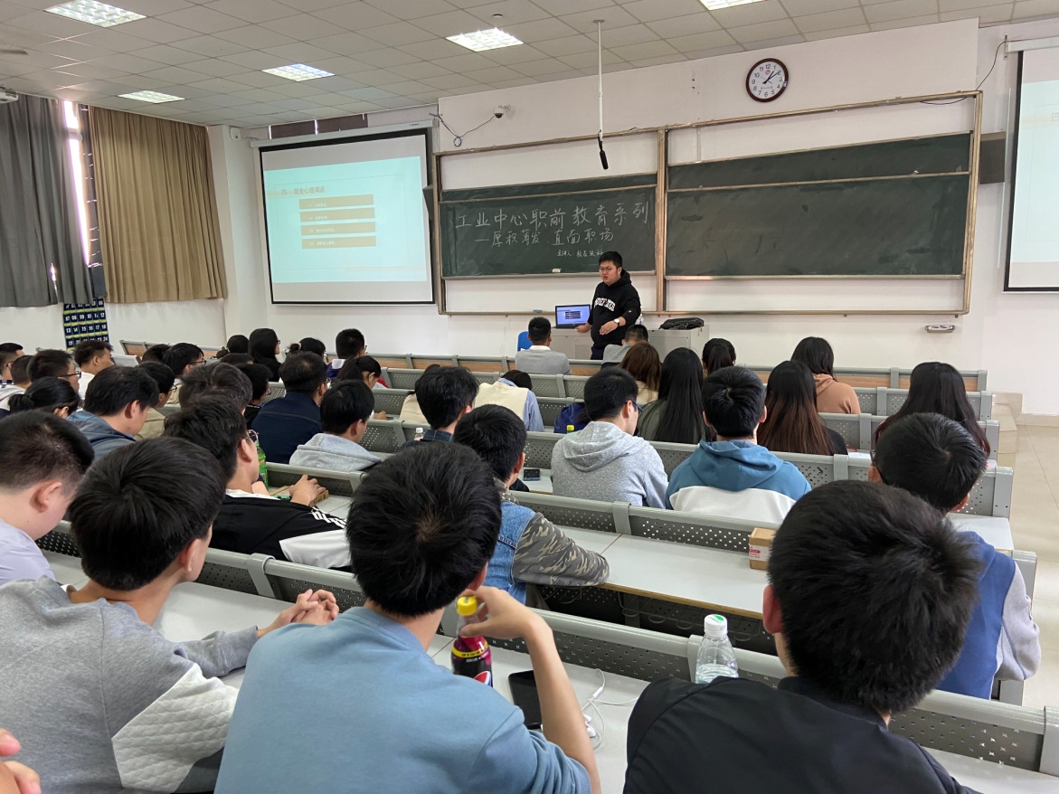 10月10日下午,工业中心在东201开展2021届毕业生职前教育,D数控111班校友、数控铣高级技师、常州冶金技师学院机械加工组教研组组长张科受邀主讲。