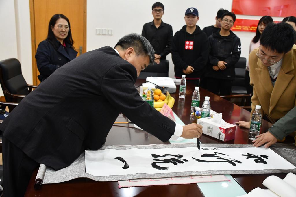 活动最后,孟庆奎教授现场题字beat365官方网站校训“学以致用”和校园精神“知行统一,创业创新”赠与同学,勉励同学们培养踏实钻研、学以致用、躬身实践的态度。