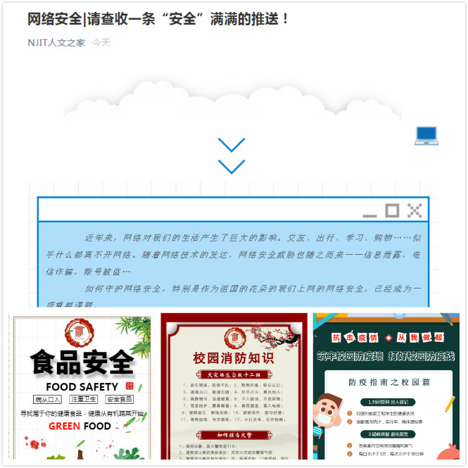 活动期间,各年级辅导员、班主任、第二班主任分别召开了形式不同的校园安全主题班会,涉及宿舍安全、水电安全、食品卫生安全、防盗防诈骗、心理健康等。社保201的班主任原成成老师结合近年来典型诈骗案例,详细说明了网络诈骗的成因和特点,并警醒同学们应关注日常生活中容易忽视的问题。社工201的第二班主任赵迪老师则着重强调了心理健康的重要性,针对新生可能会遇到的人际交往、感情、学业方面的问题进行了分析,并鼓励同学们要积极面对挫折,体验幸福大学生活,真诚待人,积极寻找生活中的“小确幸”。同时,为增强安全教育效果,该院线下开展大规模宿舍卫生安全检查,线上紧抓网络阵地,打造安全教育体系。通过设计安全教育海报、制作校园贷、电信诈骗等安全教育的微信推送,加强对学生的思想引导,让安全教育真正走到学生的心坎上。