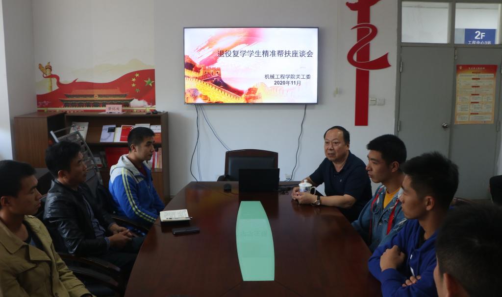 11月3日下午,机械工程学院在工程中心3号楼202举行了退役复学学生座谈会。该院党委副书记印书范、关工委特邀党建组织员刘庆国、辅导员及退役复学学生代表参加了活动。