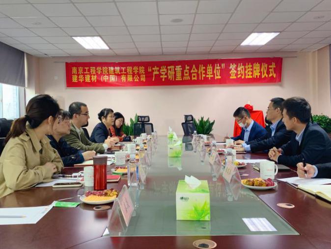 11月18日,建筑工程学院党政负责人一行来到建华建材(中国)有限公司,就校企合作事项进行座谈,双方签订了校企产学研重点合作框架协议。江苏建华副总经理何鹏飞等相关领导出席座谈会。