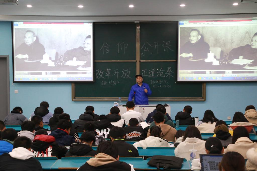 为了引导学生感悟信仰之力、理想之光、使命之坚、担当之要,近日,国际教育学院举办了以“学‘四史’不忘来时路,守信仰争做新青年”为主题的系列信仰公开课,邀请人文与社会科学学院王孝勇教授、国际教育学院关工委退休教师刘新华老师担任主讲。