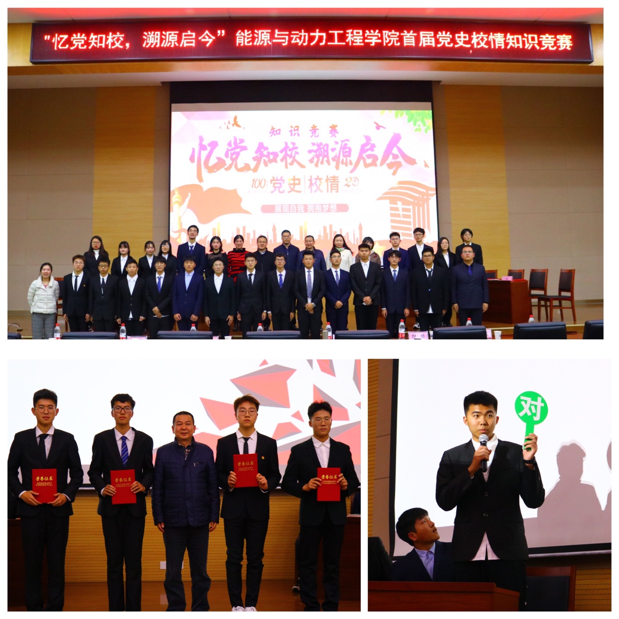 为深入学习贯彻习近平新时代中国特色社会主义思想及习近平总书记关于深入开展“四史”教育讲话精神,持续深化全院师生爱党、爱国、爱校情怀,12月9日,能源与动力工程学院“忆党知校·溯源启今”首届党史校情知识竞赛决赛在至美苑·设计楼动漫影视厅举行。该院党政负责人、2020级第二班主任、全体学工办老师以及近200名同学参加了此次活动。