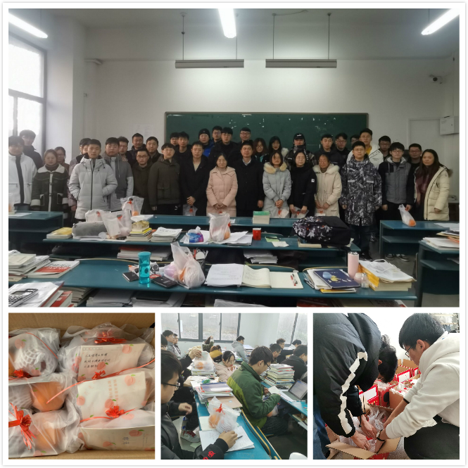 学院党委副书记戴玉明携学工办全体老师走进文理楼A106考研教室,为即将考研的各位同学送去苹果、橙子以及祝福卡片。考研礼包寄托着全院师生的期望与祝福,希望各位材子材女“脐”开得胜,马到“橙”功,顺利度过考研阶段。卡片里书写着学弟学妹们对学长学姐的殷切祝福。戴玉明副书记代表学院全体师生预祝同学们取得优异成绩,并勉励大家树立信心、放松心态,沉着应对、自信迎考。暖心活动让广大考研学子倍受鼓舞,同学们表示,老师与同学是我们的坚实后盾,自己将不忘初心、坚持到底,朝着梦想奋勇前进,不辜负自己的付出,力争交出满意答卷。