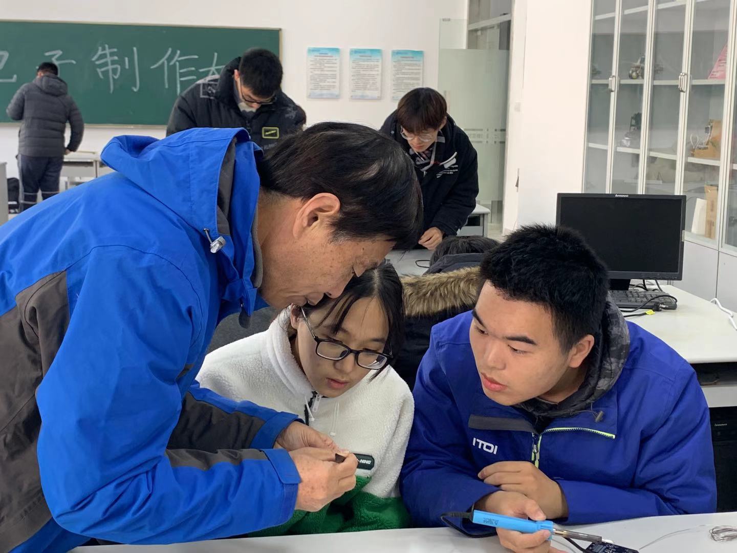 此次制作比赛秉承了该院“以大带小,共同进步”的优良模式,来自高年级的同学跟低年级的同学组队参赛。比赛现场,既有老手以纯熟的焊接技术过关斩将,更有电子制作“萌新”小试牛刀初露锋芒,大家相互配合,共同努力。黄老师也来到现场给大家指导,对同学们的焊接方法和成品进行细致点评。他鼓励同学们以赛促学,在比赛中差缺补漏,增长知识,不断充实自己的知识储备。决赛持续3个小时,通过评审最终确定了一等奖2组,二等奖2组,三等奖5组,并设立初试笔试成绩优异的鼓励奖15人。