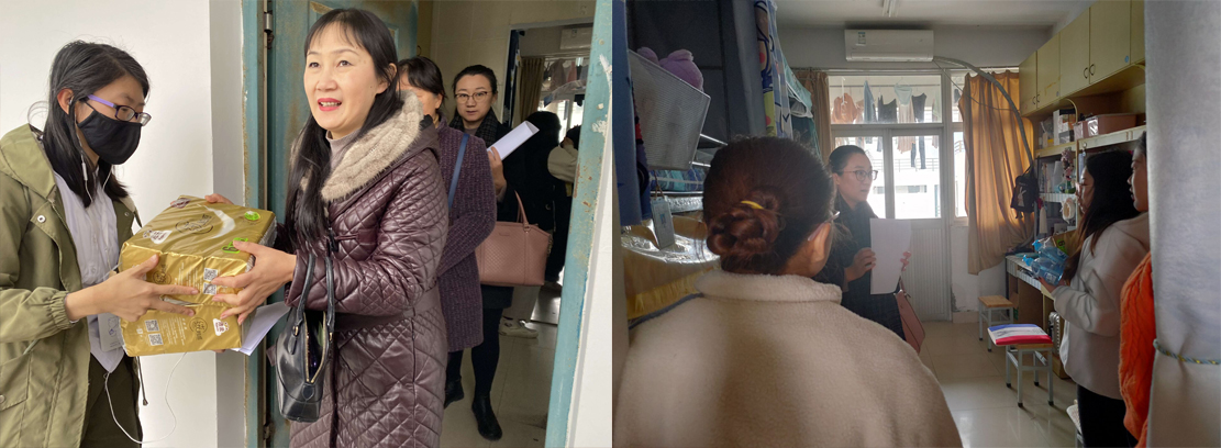 为了让同学们感受学院的温暖,进一步了解同学们期末的学习状态、生活情况,12月23日中午,人文与社会科学学院党总支书记王晓红、第二班主任代表及学工办老师深入学生宿舍,将温暖和关怀送给同学们。