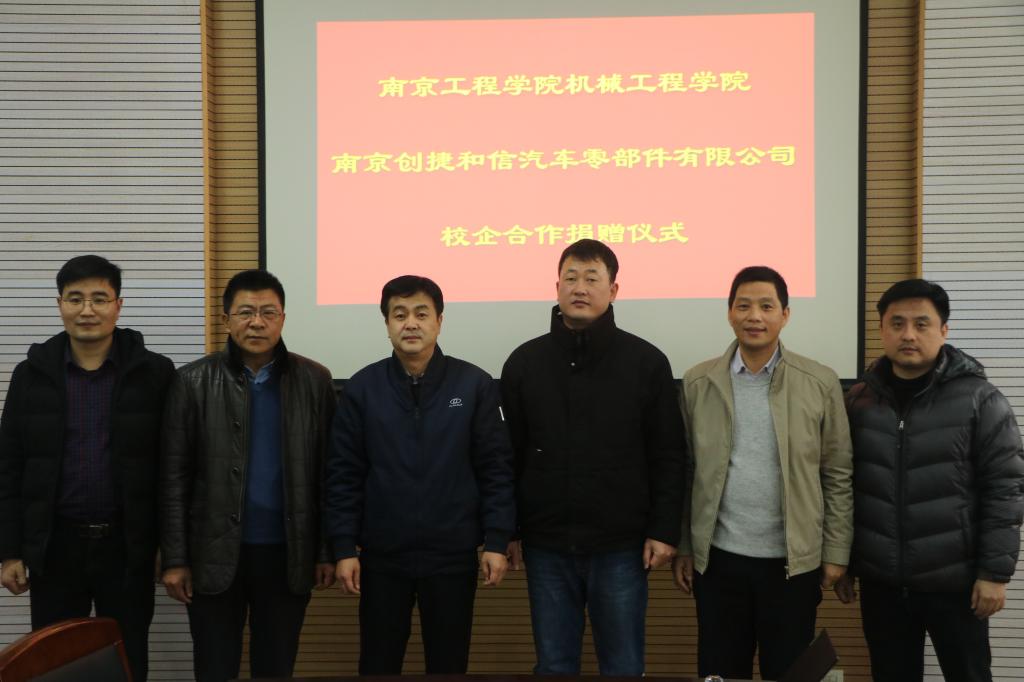 12月23日下午,机械工程学院与南京创捷和信汽车零部件有限公司捐赠仪式在至行苑·工程实践中心3号楼会议室举行。公司卜玉明总经理、刘永俊经理一行出席了本次仪式,并代表公司捐赠了客车用转向前桥总成及驱动后桥总成用于学院教学实验。学院党政负责人接待了来宾,并对企业的慷慨捐赠表示感谢。双方就今后进一步开展校企合作洽谈进行了交流。
