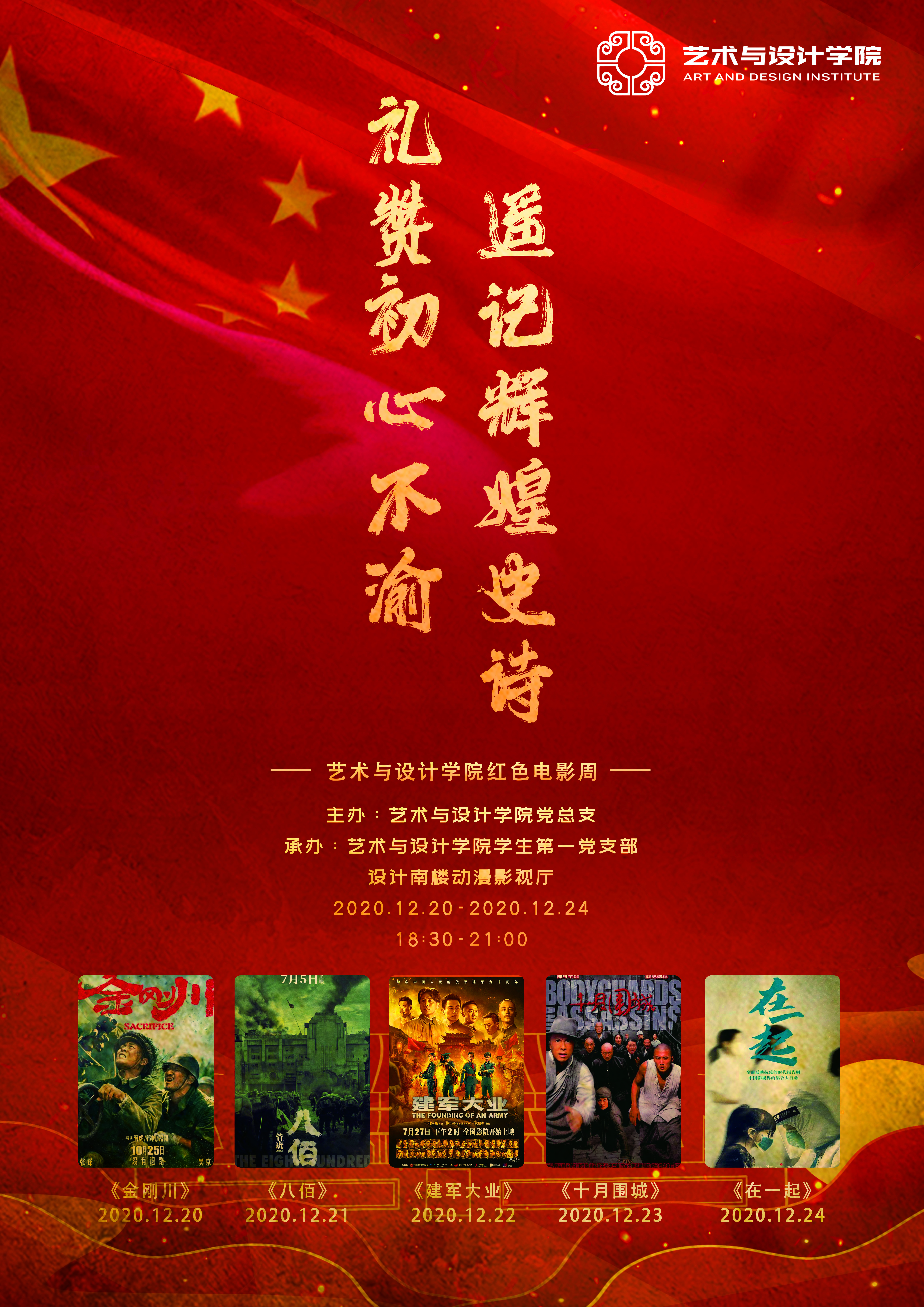 为弘扬爱国主义精神,鸣奏时代赞歌,艺术与设计学院于12月20日正式启动了第二届红色主题电影周活动。通过观看红色主题电影,让青年学生深入了解党史、增强党性修养、筑牢理想信念,引导同学们自觉将个人成长与国家发展、社会进步、时代使命紧密联系,为“中国梦”的实现贡献青春力量。