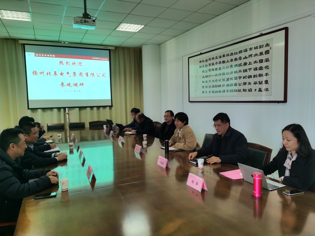 3月2日下午,扬州北辰电气集团有限公司党委书记陈健一行应邀来经济与管理学院调研考察,该院张焱院长及相关负责人、继续教育学院张晓煜副院长接待了来宾。