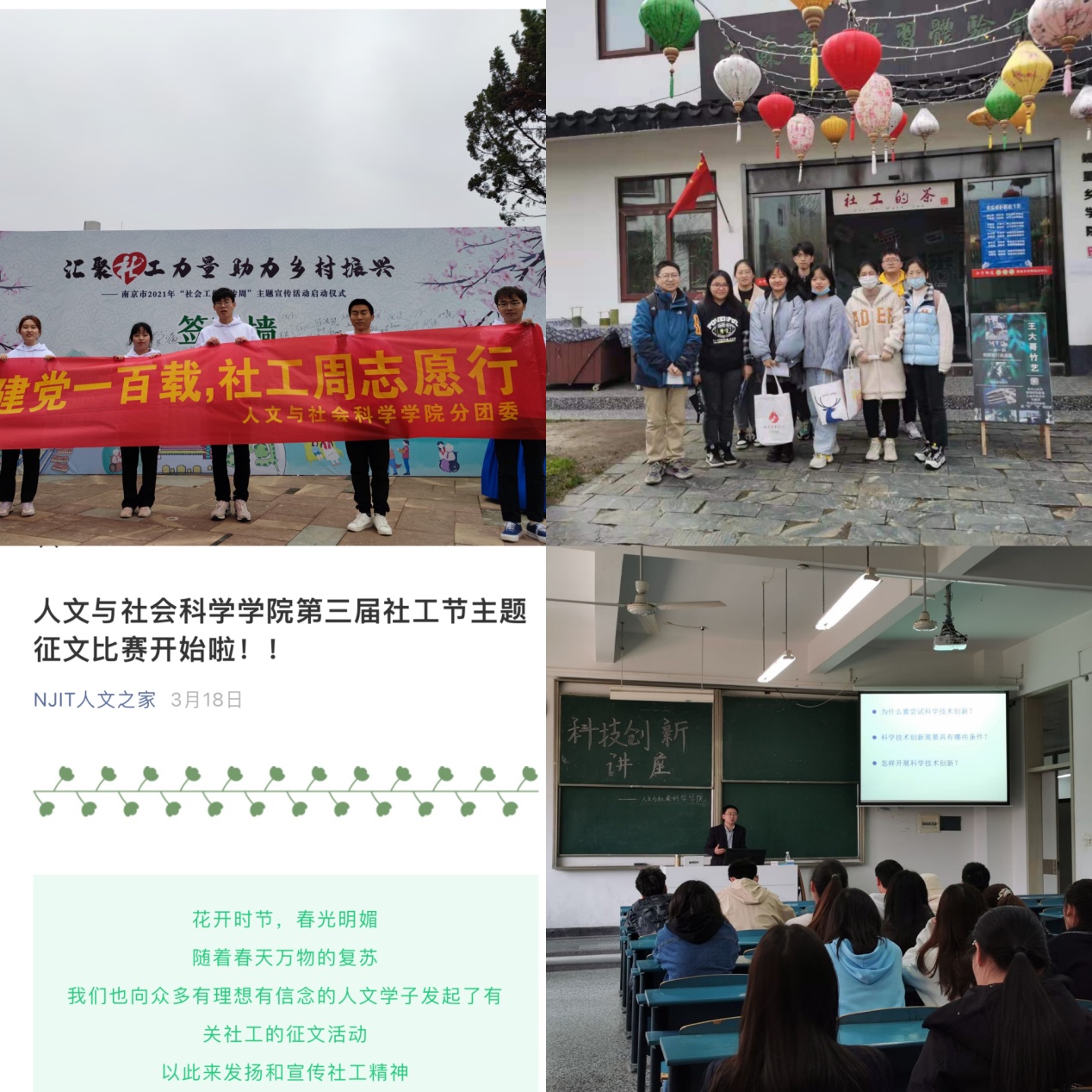 在科创专题讲座中,该院张志鹏教授以“激发创新激情,提高科创能力”为主题向同学们详细讲解了社会工作的理念和方法在大学生科技创新能力培养中的运用,并鼓励同学们积极参与社区活动,在实践中不断积累经验和灵感。同学们就“社工服务与志愿者活动的区别”、“社区治理创新”、“科创能力提升”等问题与张教授进行探讨,在交流中对大学生科技创新及社工价值体现有了进一步的认识;在主题征文活动中,同学们踊跃参与,围绕乡村振兴、社区治理、新时代文明实践等时事热点进行探讨,并形成高质量文章数十篇。最终,社工201刘诗阳同学以一篇《花落未闻名,花开识是君——记我的第一次社会活动》摘得此次征文比赛的桂冠;社工191曹运娜等3名同学获二等奖;社工182袁小敏等5位同学获三等奖;社工志愿行活动中,该院师生前往江宁区多个街道和社区开展社会实践。在江宁街道牌坊村,同学们组建的“社区治理机制研究课题组”通过与当地社区工作者交流、访谈村民等形式,了解新时代文明实践的开展情况、社区治理难题等。通过走访调研,课题组成员感受到当地打造的“社工村”特色品牌在推动乡村治理现代化中的重要作用,同时对基层发展和社区治理有了更深刻的了解。