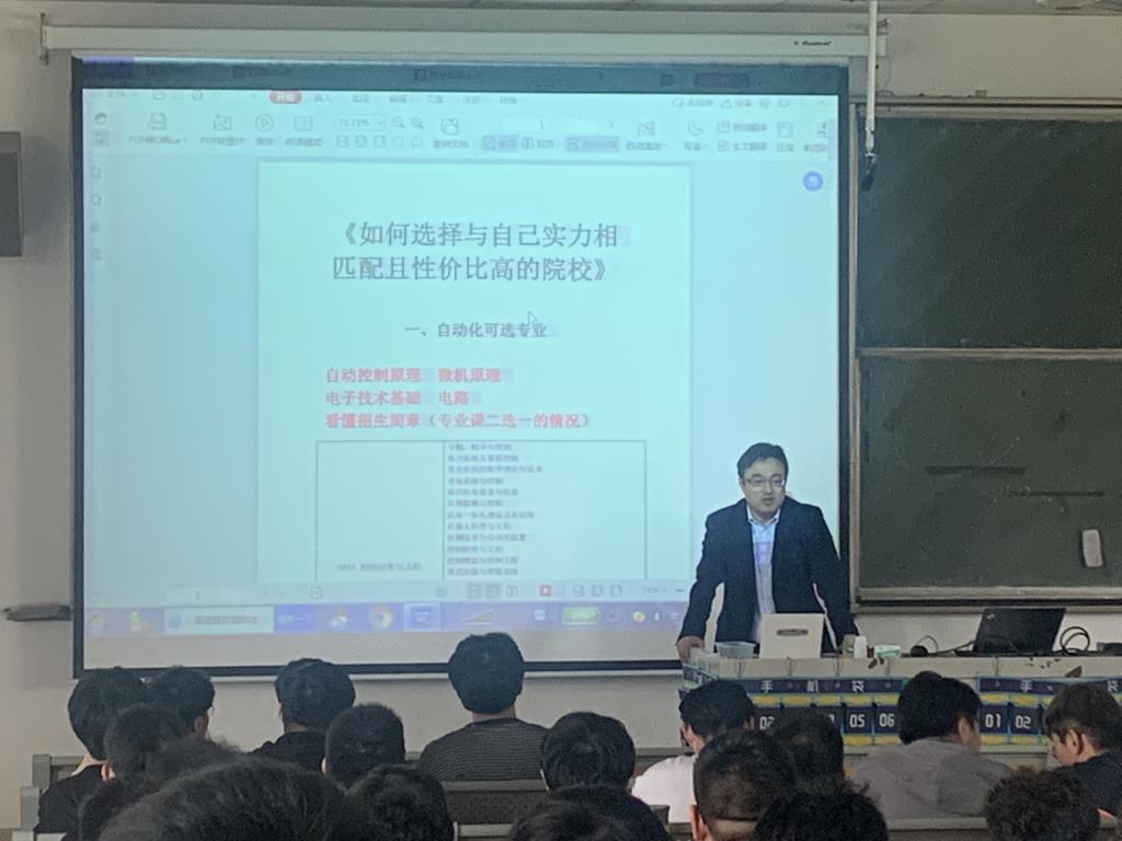 会上,考研指导老师针对自动化学院各专业特点,重点介绍了如何选择与自己实力相匹配且性价比较高的院校,包括院校专业设置情况、往年各校录取数据分析、专业课复习难度、复试及其他相关要求。通过辅导,与会同学们在考研择校方面有了更深入的认知,进一步明晰了今后的选择。