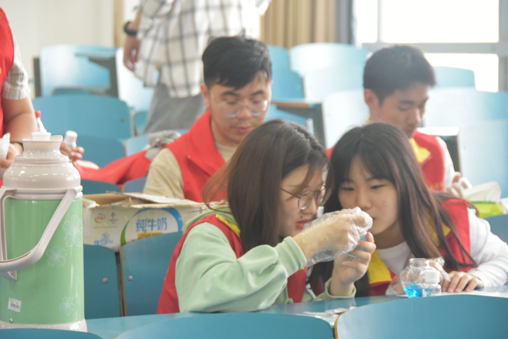 此次活动以“全国助残日”宣讲、手工制作、爱心捐赠为主,活动现场,同学们就“全国助残日”的主题、活动意义以及大学生应该承担的社会责任进行宣讲,旨在推广爱心助残理念,推动社会对残疾群体的包容与关爱。同时,材料学子发挥专业优势,教授在场同学进行手工皂和天气瓶的制作,得到了过往同学的积极参与。志愿者们将“爱”叠进千纸鹤中,并用千纸鹤拼成爱心,寓意对残疾人的关爱和人道主义精神的实践。