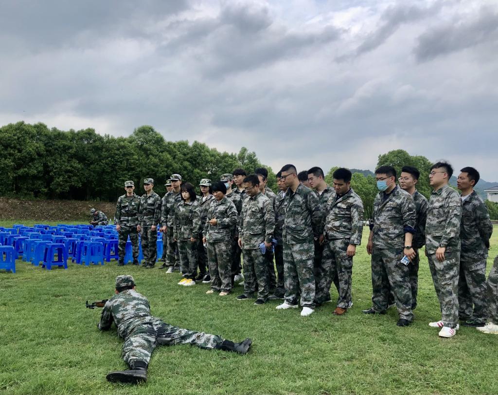 “砰、砰、砰……”5月17日下午,一阵阵震耳的枪声划破了南京市国防教育训练基地宁静的上空。伴随着淅淅沥沥的小雨,beat365师生在基地专业教官的指导下,随着指挥的口令,上阵、卧倒、握枪、瞄准、扣动扳机、击发子弹,一气呵成,干脆利索完成全套动作,清脆的枪声响彻训练场。