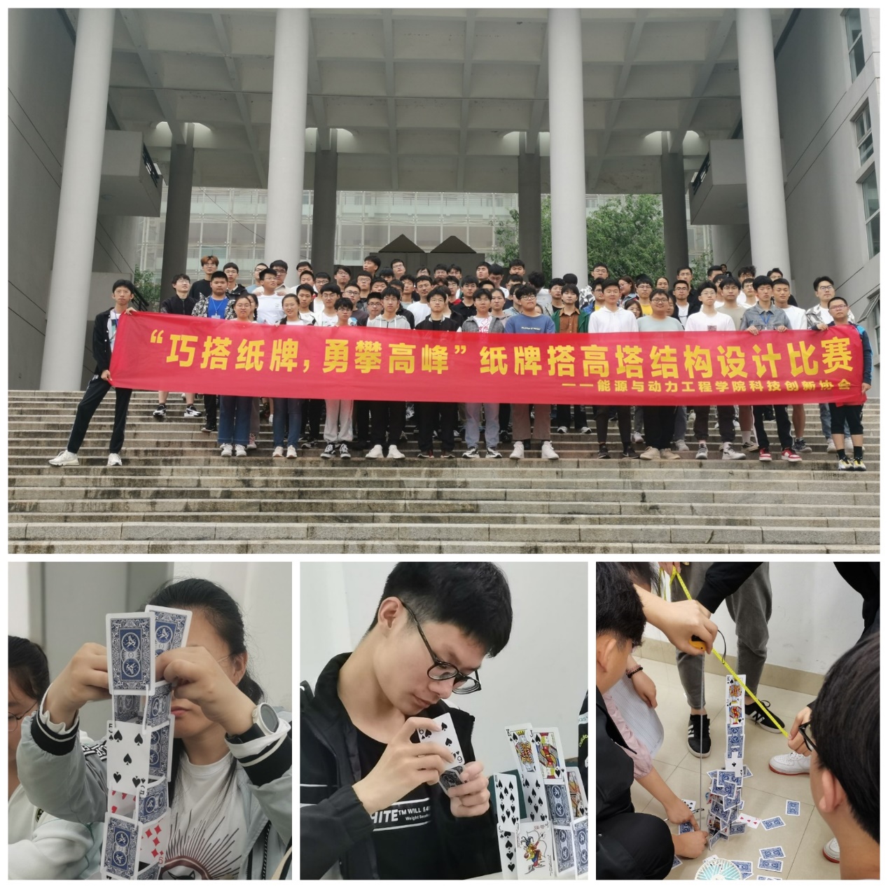为激发学生的创新思维,提高动手实践能力,能源与动力工程学院近期在学海苑·公共教学组团南馆A204举办了“纸牌搭高塔”结构设计大赛,近200名能动学子参与此次活动。