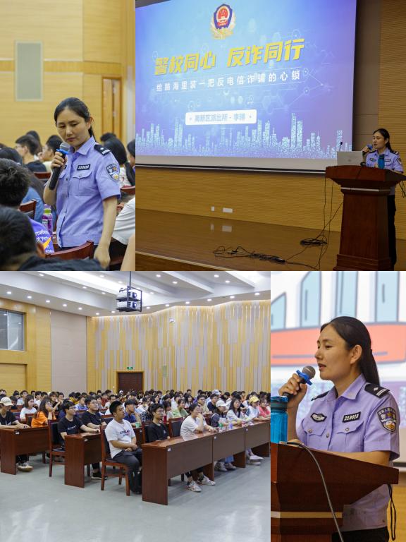 为提升广大师生防诈骗意识,增强自我防范能力,6月7日晚,环境工程学院特邀高新区派出所社区中队长李琳为师生们做了一场“警校同心 反诈同行”安全教育专题讲座,该院220余名师生到场聆听。
