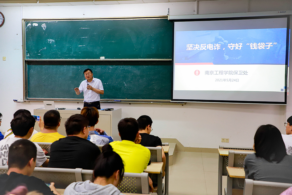 为提高大学生网络安全防范意识,营造和谐平安的校园环境,5月24日,建筑工程学院邀请校保卫处处长濮天伟为同学们带来“坚决反电诈,守好‘钱袋子’”主题宣传讲座,2020级400余名同学通过线上线下不同方式聆听学习。