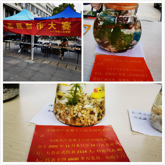 大赛前,活动主办方向同学们讲解了生态瓶设计、选材和制作的基本知识,鼓励大家深刻认识生命的本质意义,提高生态环保意识,增强建设美丽中国的青年担当。活动得到了同学们的积极参与,或个人或团队开启了“一方美好世界”的制作之旅。参赛作品在北区学生广场进行展示,一件件作品不但造型结构优美、色彩搭配绚丽多彩,而且构思巧妙,“做一个生态瓶,加深了我们对生态系统和生物圈的了解。”环境工程学院参与同学告诉记者:“今后一定将所学知识运用于建设美丽中国的实践中,为新时代生态文明建设贡献我们的青春力量,以实际行动向建党百年献礼。”