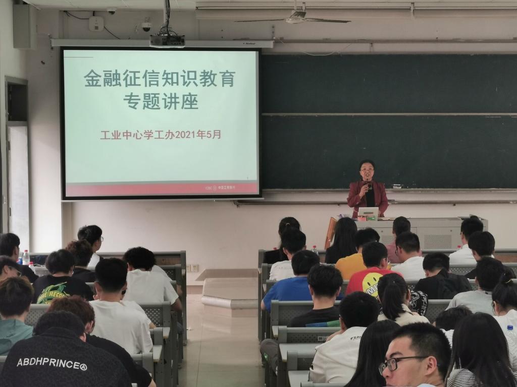 5月18日,工业中心邀请中国工商银行江宁支行尹悦在东B202教室举办了一场金融征信专业知识讲座。尹悦老师以《大学生征信知识培训及金融安全教育警示》为题,为现场100多名同学上了一堂安全教育课。