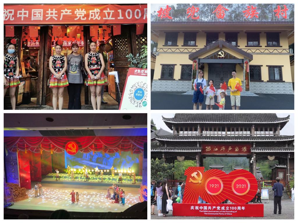 在西江千户苗寨,小组成员了解到西江千户苗寨景区通过形式多样、内容丰富的宣传形式,精心打造了庆祝建党百年主题点位及网红示范点,把爱党爱国爱社会主义的热情转化为实际行动,深化党史学习教育。在福建省云霄县,下河乡坡兜村作为全县唯一的畲族村,则是精心绣制了一幅庆祝建党100周年的畲族刺绣,该刺绣由畲族刺绣非遗传承人用一个月的时间手工绣制完成,一针一线融入了对党对祖国的美好祝愿。在新疆乌鲁木齐,为庆祝建党100周年,深入推进党史学习教育,营造良好的党史学习氛围,维吾尔族联合汉族人民在礼堂举行文艺汇演。“通过此次调研,我们深刻感受到了民族团结心连心,华夏大地一家亲。”自动化204陆胤羽同学表示,百年征程映百年伟业,全国各民族齐心同庆,作为新时代青年,也要坚定信念,撸起袖子加油干,为中华民族的伟大复兴贡献一份力量。