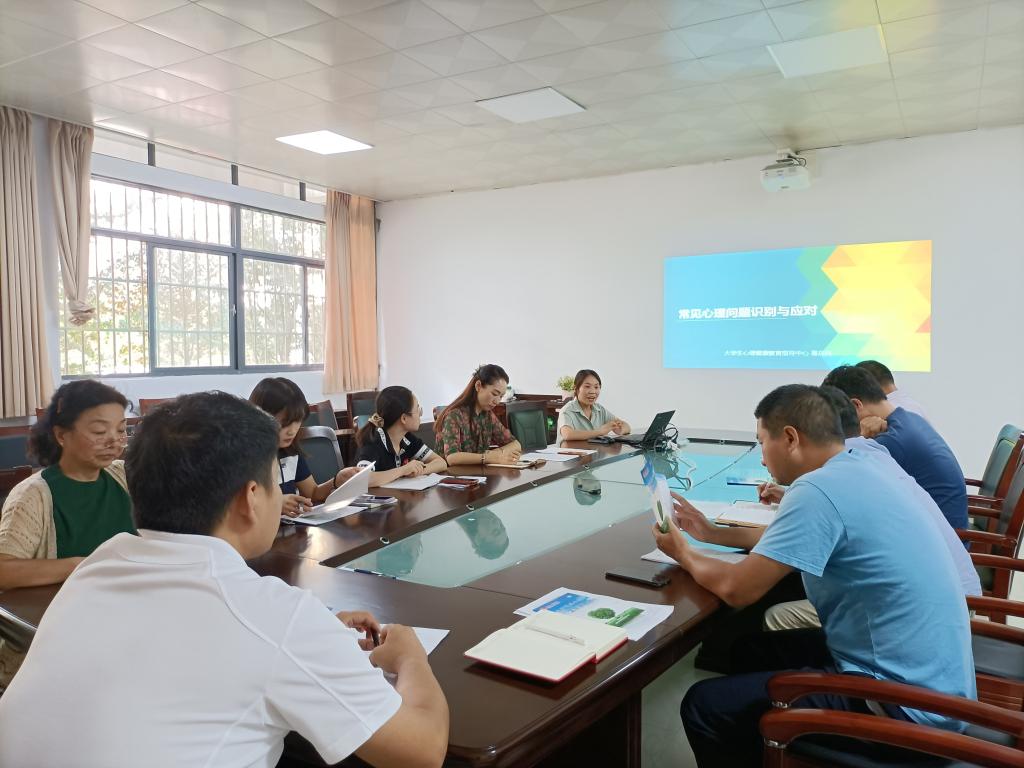 王雪飞副书记向全体新任班主任表达感谢,期盼新任班主任尽快进入角色,在学生身上花时间、花精力,给予学生关心与爱护,尽早激发学生对于专业的热爱,加强对学生学习习惯的培养,她勉励新任班主任充分认识育人工作的神圣性,用爱肩负起立德树人的职责,成为同学们成长成才的引路人。葛老师从心理问题、识别方法、具体案例等方面,针对常见的焦虑、强迫、抑郁等情况进行了深入浅出的讲解,并指导老师们面对学生心理危机时,如何进行谈话,在日常生活中如何应对等。会上,辅导员老师们分别围绕学生入学教育、新生报到流程等方面内容,为新生班主任进行了解读和培训。