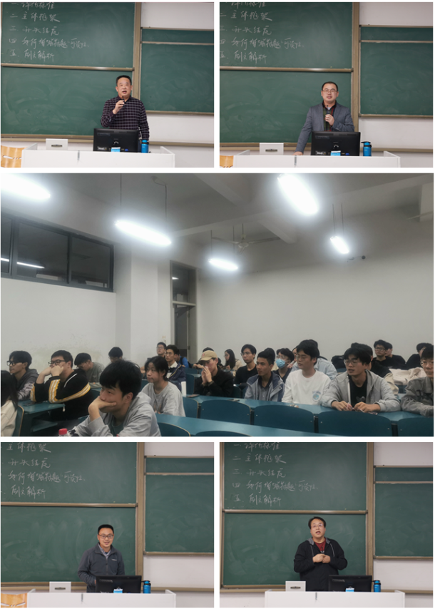 数理学院党总支的党员教师杨祥生、赵国俊、吴业军分别就考研数学的出题特点、数学基础知识点、考点布局、题型展望进行讲解。三位老师特别从阅卷老师的角度强调做题过程的严谨性、书写的规范性、条理性等注意事项。党员教师们开门见山的讲述风格、清晰的条理,不仅舒缓了考研同学的压力,而且帮助了同学们增强自信心同时有助于提高同学们对考研的进一步认识,赢得了同学们阵阵热烈的掌声。